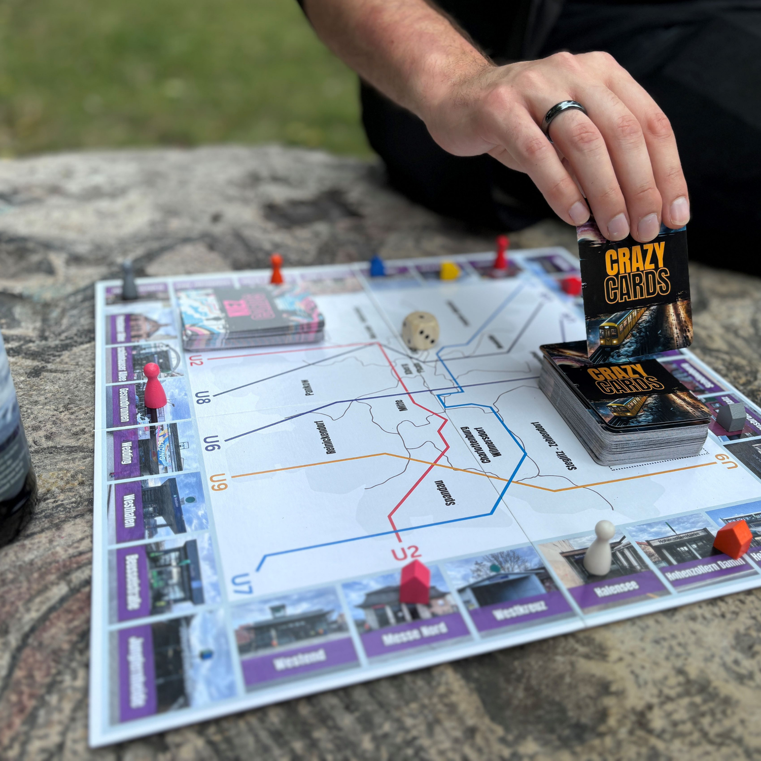 Rignbahn Roulette is a delightful board game that captures the charm and quirks of Berlin. With hilarious challenges and clever references to local culture, it’s both entertaining and educational. Perfect for game nights with friends. If you want to adjust it for playing with kids, you can put away couple of cards and it's turning into a family board game!